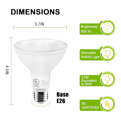 Dimmable: The par30 led lamps with excellent performance are dimmable. They are compatible with most dimmers on the market and are suitable for decoration on most occasions. Giving off 850lumens 5000K Daylight White with an 40°Beam angle, AC 120V E26 led bulb base.