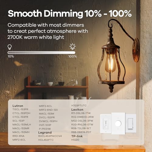 ?Smooth Dimming & Flicker Free? Linkind ST58 edison dimmable led light bulbs have smooth dimming range from 10%-100% without any buzz or flickering, helping you to set any brightness you prefer. Giving off 700 lumens of light output, they are super bright to light up every dark corner and create a cosy, neat atmosphere for relaxation with 2700K soft and warm white light. (Used with Dimmer)
