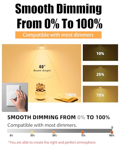 SMOOTH DIMMING: Lumiverse dimmable LED bulbs are silent and meet your various lighting needs without annoying flicker. You can dim it completely smoothly from 0%-100%, clearer than traditional halogen bulbs. Bulb is compatible with most electronic LED dimmer switches.