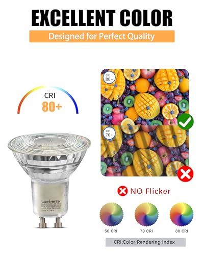 GREAT SAVINGS AND LONG-LASTING: Our 5.5W GU10 Dimmable LED Bulbs are an excellent replacement for 50w halogen bulbs, saving 89% on energy and electricity bills. Due to the super long lifespan of up to 25000 hours, it solves your problem of frequent lamp replacement.