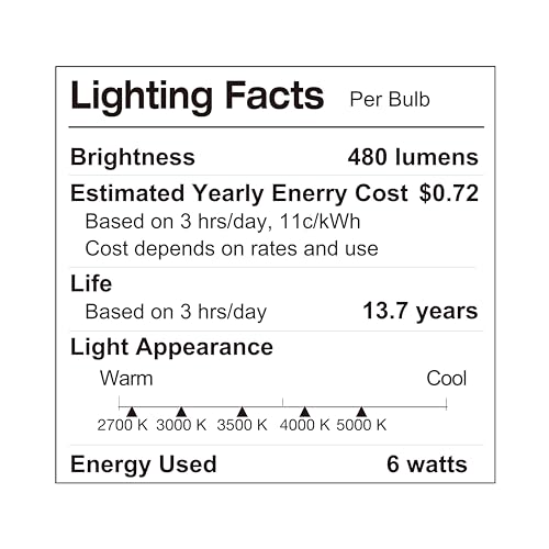 ENERGY SAVINGS - 480 Lumens, Use only 6W (40W Equivalent) and save 85% instantly.