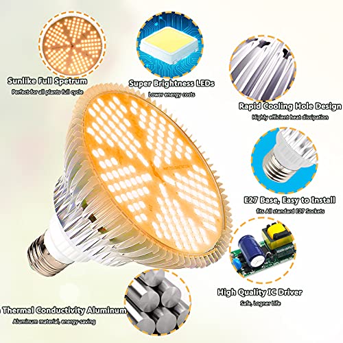 [High-Efficiency & Scientific Heat Dissipation Design] LED grow light bulb with better material production, the heat sink is made of metal aluminum with finned heat sink design can better heat dissipation, You will keep your plants alive and extremely healthy thanks to this fantastic bulb.