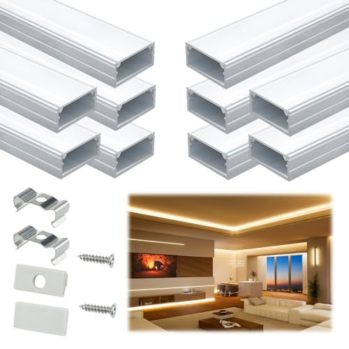 Package include: This item includes 10pcs LED channel, 10pcs milky white led light diffuser/cover, 20pcs end caps, 20pcs mounting clips, 20pcs screws. Each segment is 1M /3.3ft, total length is 10M/33ft. This LED extrusion internal wide is 16mm(5/8”) and its height is 7mm(9/32”). Premium lighting effect with the new Muzata LED strip