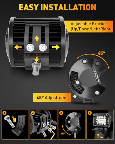 [Spot Flood Combo LED Light Pods] - NAOEVO 4 inch LED pods feature 15° spotlight beam to provide high-focus, long-range visibility, while the 120° floodlight beam provides broader coverage. Furthermore, a 45° adjustable bracket for flexible repositioning to change beam direction. The combo is ideal as offroad/driving lights, as you need to see both ahead and around you while driving.