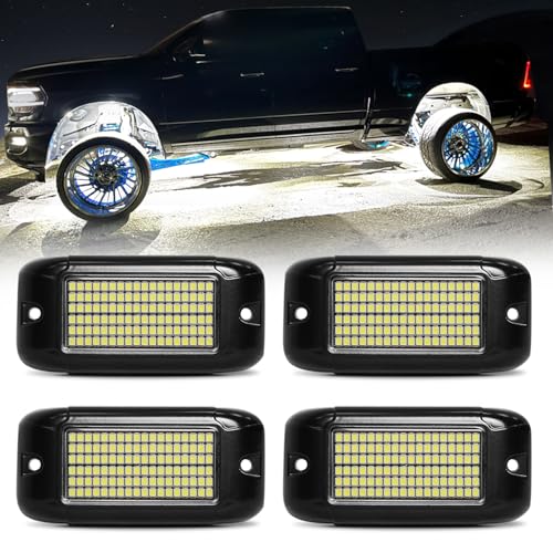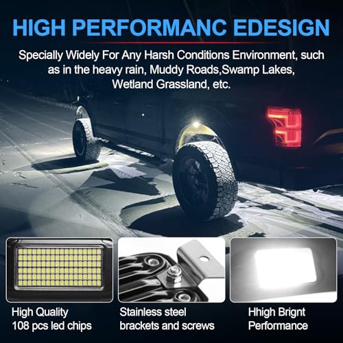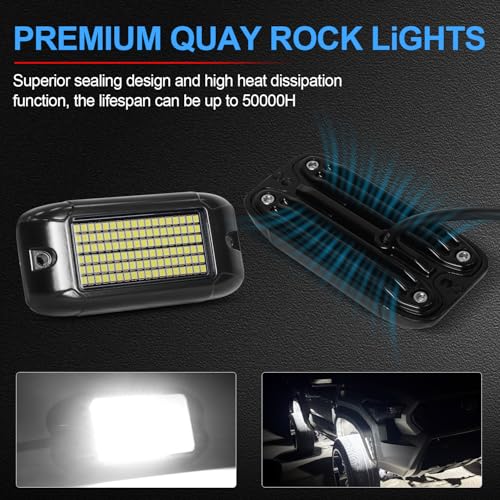 Ultra-Bright 108-LED Output – Much more Brighter Than Standard Rock Lights Each pod is equipped with 108 high-performance pure white LEDs with a 180° ultra-wide beam, these led pods deliver intense clarity and coverage, lighting up even the darkest trails and terrain.