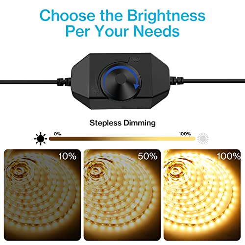 Dimmable: Comes with a dimmer switch. You can shut the led tape lights off or change the intensity of the light. Great for a bedroom or a dorm room