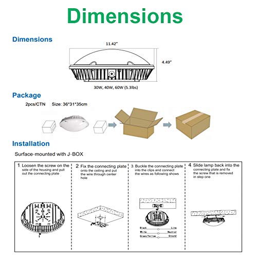 ?????LIGHT UP THE NIGHT?- This 8200lm, 30W/40W/ 60W Selectable high quality lamp will provide you that bright and clear outdoor lighting you have been looking for! The beam angle boasts a wide 110 degree industry leading scope. Now you can safely enjoy beautiful nights playing games outside with your family and friends. As an electrician or contractor, you can impress your clients with one of a kind, state of the art lighting! This canopy light is so efficient that it can easily reach up to 135lm/W