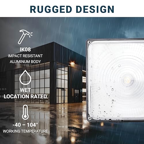 ? WIDE APPLICATION. An ideal modern solution to illuminating commercial spaces including parking lots, gas stations, underpasses, and more. This dependable, easy to install light provides optimal lighting for applications without any blind-spots or light pollution caused by most commercial lighting products.