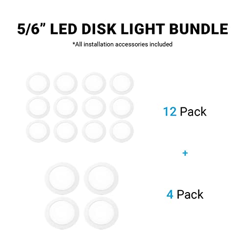 This bundle includes 12-Pack 5/6 Inch LED Disk Light Surface Mount Recessed Flush Ceiling Lighting 3000K (Soft White) and 4-Pack 5/6 Inch LED Disk Light 3000K (Soft White)