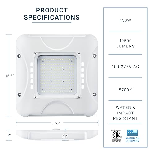 BRIGHT LIGHT OUTPUT. With a bright color temperature of 5700K and a 19,500 High Lumen output, this ultra bright 150 Watt LED Ceiling Canopy Light will ensure optimum luminescence.
