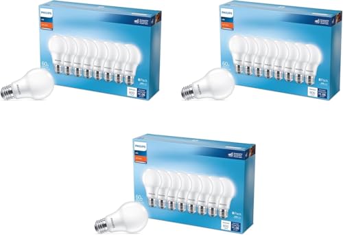 Philips LED A19, Non-Dimmable, Flicker-Free, Eye Comfort Technology, 500 Lumen, Frosted, Soft White 2700K, 5W=40W, 24PK