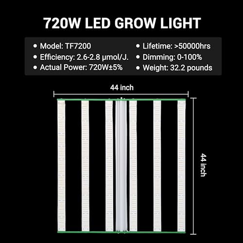 Full Spectrum 720W LED Grow Light: The spectrum ratio is adjustable to provide more matching spectrum for plants, full spectrum lighting of natural light, dimming function enable vegetables and flowers and fruits to provide appropriate light for plants at different growth stages, from seedling to flower, greatly Increase your harvest