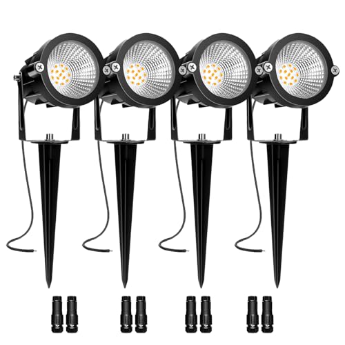 REEGOLD Low Voltage Landscape Lighting: 10W 1000LM LED Landscape Lights Outdoor 2700K Warm White Spotlights with IP65 Waterproof for Yard Garden | 4 Pack of 12V 24V Low Voltage Lights with Connectors