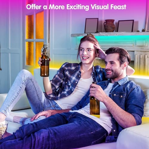 Music Sync Led Lights: RGB LED light strips can freely control thousands of colors through 44-key remote control or smartphone APP. Adjustable brightness and multiple lighting modes to fit room mood, built-in sensitivity adjustable microphone, which can create a romantic, relaxing and cheerful party ambiance with music.