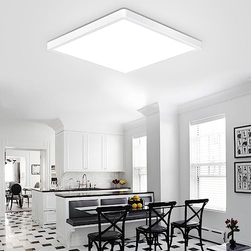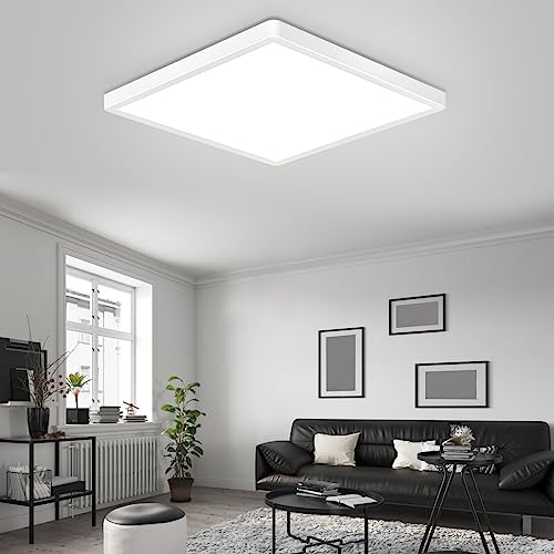 ?High Brightness & Flicker-free?Square LED ceiling light with 120pcs high efficiency SMD2835 CRI85+ LED chips, output up to 2800 lumens. Flat ceiling light shines brightly, evenly, flicker-free, very clean soft light output, free of glare.