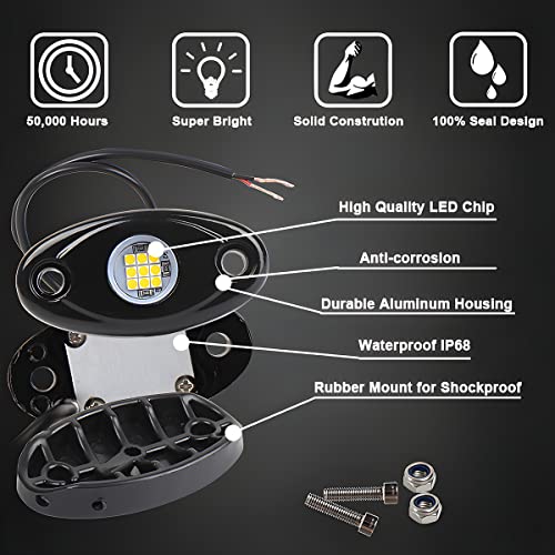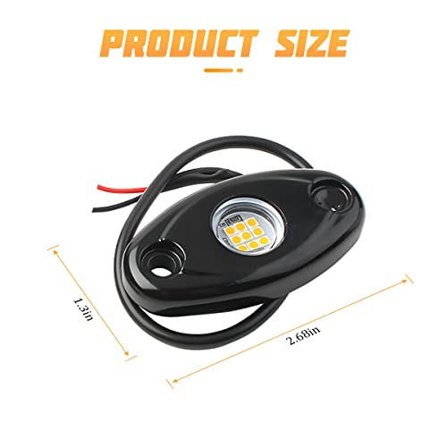 ?Designed for Quality?: High quality aluminum alloy shell, with great corrosion resistance, light weight and high strength, easy to use. The working life of these rock lights is 30,000 hours, and it can maintain good working condition in various harsh environments. Whether driving in the desert, lake, or road full of gravel, it can perform well.