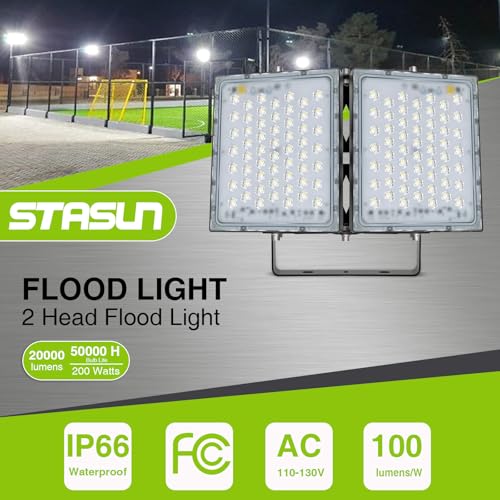 EXCELLENT HEAT DISSIPATION: The STASUN 200 watt floodlight is designed with a robust die-cast aluminum housing and a shock-resistant PC lens that ensure excellent heat dissipation and long-lasting performance. It features a thickened fin-type heat sink that acts like a radiator to dissipate heat, preventing the light from overheating and prolonging its lifespan
