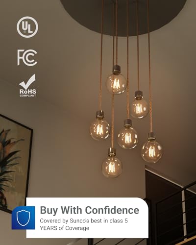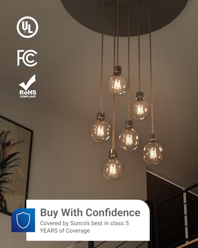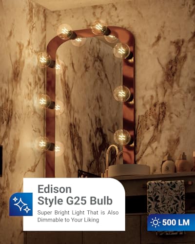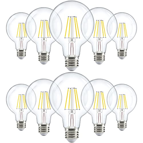 Sunco 10 Pack G25 Globe Light Bulbs LED Edison Vanity Light Bulbs, CRI90 3000K Warm White, Dimmable, 5W=60W, Clear Vintage Filament Globe, 500 Lumens, E26 Base Indoor Outdoor Clear UL