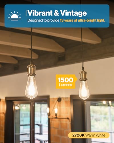 Top Rated Vintage Filament ST64 Dimmable Bulb ? ULTRA-BRIGHT - Experience vivid vibrance with our high lumen LED ST64 bulbs. Featuring a widespread 320° beam angle, you can create a bright, brilliant, & energy-saving environment with lighting that outshines traditional bulbs! Proudly backed by UL, FCC, & Title 20 certificates. ? VINTAGE & ELEGANT STYLE - With its Edison-style filament, our ultra-bright LED ST64 bulbs add a classic touch to bathrooms, kitchens, dining rooms, common spaces, & more! ? DIMMABLE - Create an inviting ambience with seamless dimmable capabilities (10%-100%) to match any mood. Instant-on and flicker-free for maximum eye comfort. ? SUNCO+ BENEFITS - 5+ years of protection! Say hello to a brighter future with Sunco+ benefits - industry-leading coverage, support, and peace of mind.
