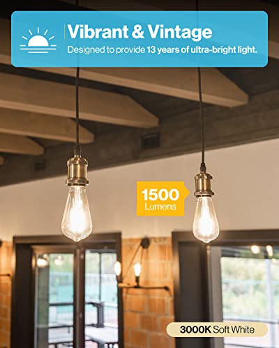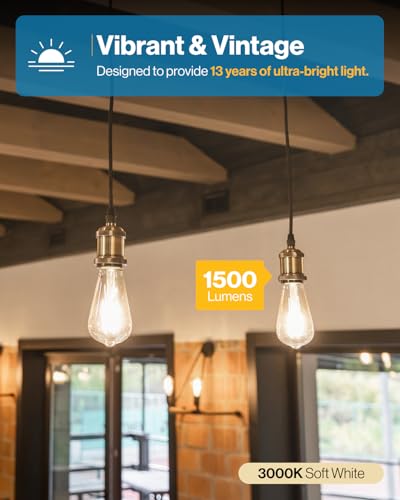 Top Rated Vintage Filament ST64 Dimmable Bulb ? ULTRA-BRIGHT - Experience vivid vibrance with our high lumen LED ST64 bulbs. Featuring a widespread 320° beam angle, you can create a bright, brilliant, & energy-saving environment with lighting that outshines traditional bulbs! Proudly backed by UL, FCC, & Title 20 certificates. ? VINTAGE & ELEGANT STYLE - With its Edison-style filament, our ultra-bright LED ST64 bulbs add a classic touch to bathrooms, kitchens, dining rooms, common spaces, & more! ? DIMMABLE - Create an inviting ambience with seamless dimmable capabilities (10%-100%) to match any mood. Instant-on and flicker-free for maximum eye comfort. ? SUNCO+ BENEFITS - 5+ years of protection! Say hello to a brighter future with Sunco+ benefits - industry-leading coverage, support, and peace of mind.