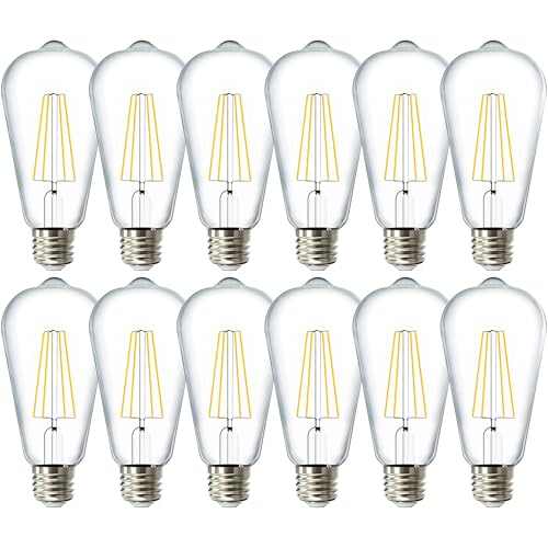 Sunco 12 Pack 60W Vintage LED Edison Bulbs Equivalent 8.5W CRI92 800 Lumens, Dimmable ST64 Filament 2700K Soft White E26 Medium Base Light Bulbs High Brightness Clear Glass Waterproof UL