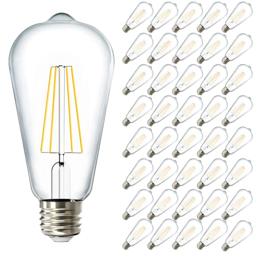 Sunco 40 Pack Edison Bulbs LED ST64, Clear Vintage Filament Waterproof Bulb, 800 LM, 8W (60W Equivalent), ST19, 5000K Daylight, E26 Medium Base, Decorative Dimmable UL