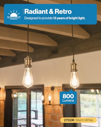 Sunco 6 Pack 60W Vintage LED Edison Bulbs Equivalent 8.5W CRI92 800 Lumens, Dimmable ST64 Filament 2700K Soft White E26 Medium Base Light Bulbs High Brightness Clear Glass Waterproof UL