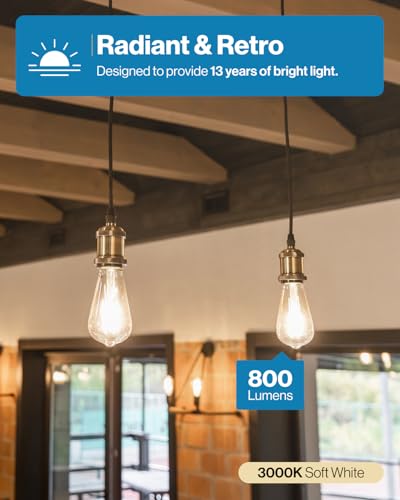 Top Rated Dimmable ST64 LED Bulb E26 Base ? DIMMABLE - Seamless dimming capabilities (10%-100%) to suit any mood or decor. Our ST64 LED lights combine charming vintage design with the latest in LED technology. Ideal applications include restaurants, hotels, lamps, exposed fixtures, wall lanterns, pendants, and string lights. ? WATERPROOF - Our LED ST64 bulbs are weatherproof and can stand up to the elements. Dust-tight construction provides you with reliable bright light in any weather. Lower your energy consumption instantly (up to 85%) by converting to LED. ? UL CERTIFIED & TITLE 20 COMPLIANT - We uphold the highest standards for all our products by testing each product for optimal performance and safety. Sunco's LEDs are the sustainable choice offering a longer lifetime than traditional bulbs (halogen, incandescent, fluorescent) to reduce maintenance. ? SUNCO BENEFITS - 5-Year Warranty! Sunco is proudly based in the USA, offering quality products at affordable prices backed by industry-leading warranties and knowledgeable support specialists.