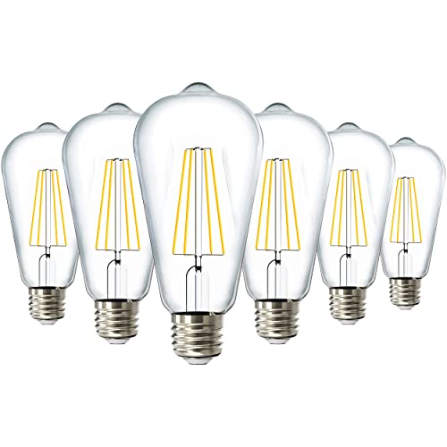 Sunco Lighting 6 Pack 60W Vintage LED Edison Bulbs Equivalent 8.5W CRI92 800 Lumens, Dimmable ST64 Filament 3000K Warm White E26 Medium Base Light Bulbs High Brightness Clear Glass Waterproof UL