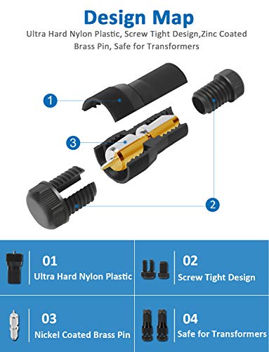Ultra Strong Nylon Plastic and Brass Pin:SUNVIE landscape lighting connectors are made of extremely sturdy nylon plastic + fiberglass mixture and CNC machined nickel- plated brass pins to ensure corrosion resistance and electrial conductivity for outdoor use.