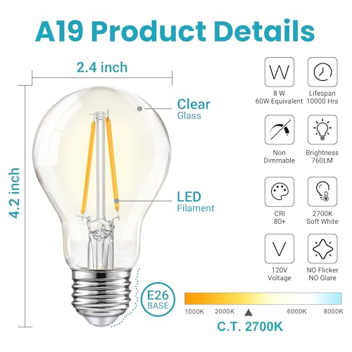 ?Classic Vintage Design & Wide Application?Designed based on Thomas Edison's original filament bulb, the vintage retro style making this led bulb also a beautiful decorative lights. Those led bulbs are suitable with chandeliers, ceiling fans, pendant lighting, sconces, lamp post, lanterns or any home lighting fixture with an E26 medium standard base socket. Widely used in bedroom, living room, dinning room, bathroom, laundry room, porch or entryway.