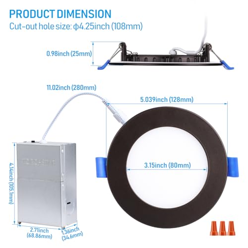 Ultra Thin & Free Installation: Ultra-thin design, with a light body thickness of only 0.47 inches, ensures seamless integration into your ceiling. 2-inch height perfectly accommodates both the light body and the junction box. Simply connect the junction box to the light, and then secure it to the ceiling using the spring clip