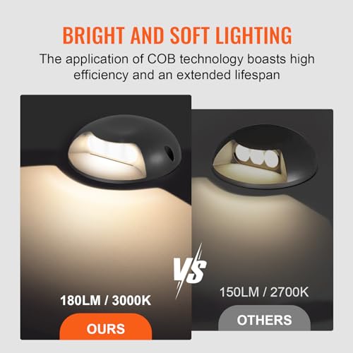 Powerful Illumination: The low voltage deck lights comes as a set of 12. Each hardscape lighting provides outstanding illumination of 180LM with an efficient 3W power, filling your outdoor space with bright brilliance whether used for lighting or decoration.