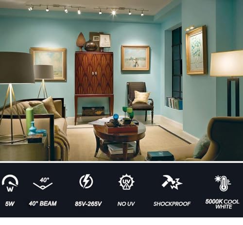1,?Super Bright & High CRI?: Build-in the latest LED technology, this mr16 gu10 led bulb give off a full 500 lumens of brightness and a stable 5000k daylight glow. Features with more than 80+ CRI and a wide beam angle of 40 degrees, our led gu10 bulb provide you with vivid and natural color performance, ideal for commercial lights or any space that needs bright home lighting.