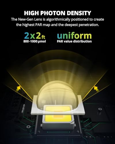 OPTICAL LENSES DESIGN DIMMABLE LED GROW LIGHT: VIPARSPECTRA XS1500 Pro grow lights for indoor plants seed starting veg flowering have optical lenses design that ensures more concentrated light and less light loss to achieve the most uniform PPFD for optimal photosynthesis and growth, ensuring that plants absorb balanced PPFD at every corner, promoting balanced growth for healthier plants and higher yields.