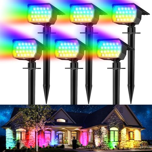 WENATY Solar Spot Lights Outdoor Color Changing, [7 Mode/6 Pack] Christmas Landscape Spotlights, Solar Lights Outdoor Waterproof, Solar Led Powered Flood Light for Outside Pathway Yard Garden Walkway