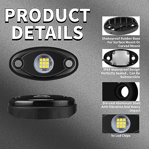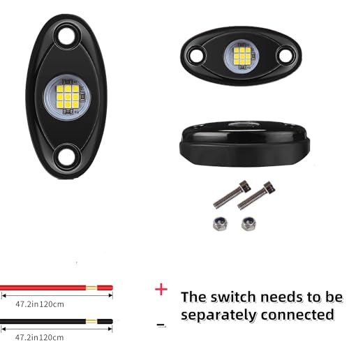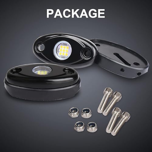 Wide Application: These underglow rock lights are designed for all kinds of vehicles with working voltage 12V DC. Universal fits Jeep, ATV, UTV, Trucks, Off Road, SUV, Cars, Boat Deck, Sportbike, Cruisers, etc. These LED rock lights not only as a rock light for car , but also for underbody interior, exterior light, dome light, neon LED light, yacht light, etc.