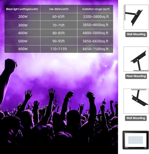POWERFUL 400 Watt BLACK Outdoor LIGHTS?120 degree wide beam angle, each 400W Super power blacklight flood light can cover a spacious living room, yard or other outdoor party spot. The wavelength is 395-405 nm