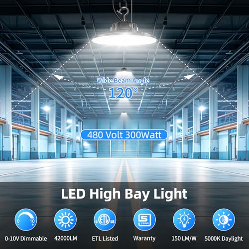 Easy Installation: This ufo led light has a wide operating voltage range of AC 277~480V and comes with a 5FT ETL approved power cord for quick and easy installation. Besides, the fixture comes with a safety rope added an additional protection for the installation. Please refer to the instructions for detailed installation steps