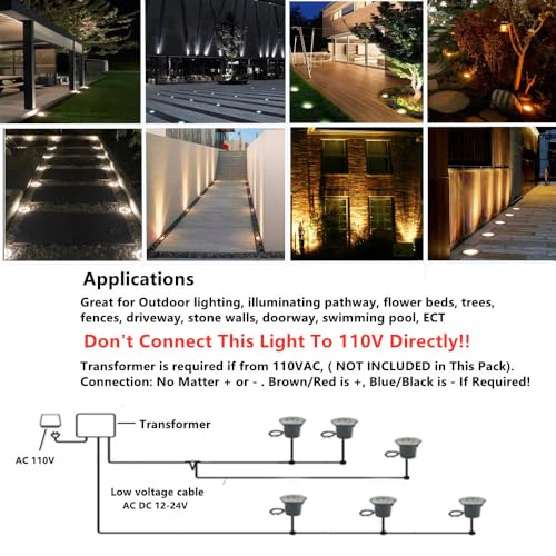Low Voltage 12V to 24V human-safe low voltage compatible with most low voltage landscape lighting systems. Wire Length 6-7inch Without Plug, Power Transformer is Required if from 120VAC